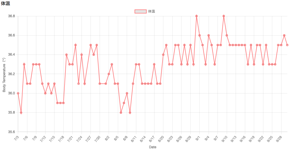 また、ずっと35度台の低体温だったのですが、少しずつ体温が上がり、今では36度台後半になる時もあります。