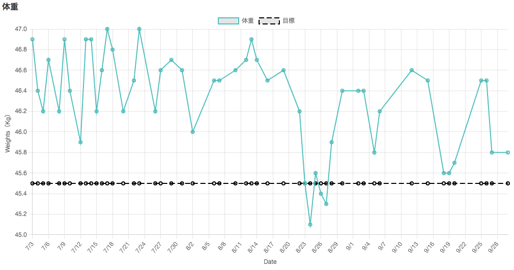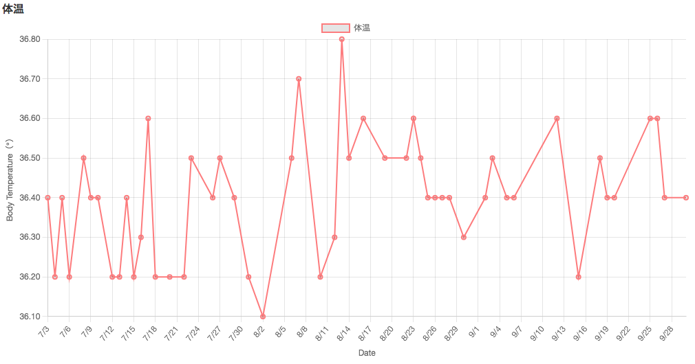 自分の体に目を向ける時間が多くなりました。体重の大幅な変化はなかったですが、3ヶ月で食べる物、食べ方など気をつけることが習慣になったと思います。またグラフにしていただいたおかげで視覚化できたのがよかったです。この企画に参加したことで生理による体調の変化、月の満ち欠けによる体調の変化など自分でそろそろこうなるな…ということがわかるようになりました。ありがとうございました。